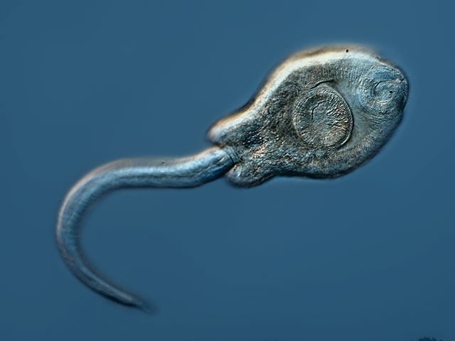 Schließe mich an! Bisher kannte ich nur die doppelschwänzigen Cercarien (Trichobilharzia), wegen der manchmal Schwimmbäder gesperrt werden, wobei die Presse schon mal von "Wasserflöhen" schrieb...