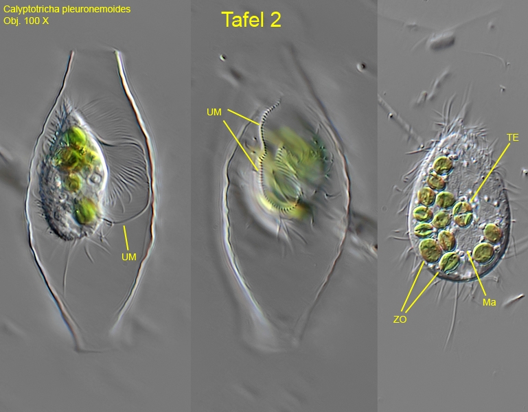 PS: Ich sehe gerade, dass Du den Beitrag in Calyptotricha pleuronemoides umbenannt hast. Dein Fund ist aber Calyptotricha lanuginosa (ohne Zoochlorellen). Für meinen Bildvergleich 0,9/1,4 haben ich nur deshalb Calyptotricha pleuronemoides (mit Zoochlorellen) verwendet, weil ich keine Fotos von C. lanuginosa mit Kondensor 1,4 habe.