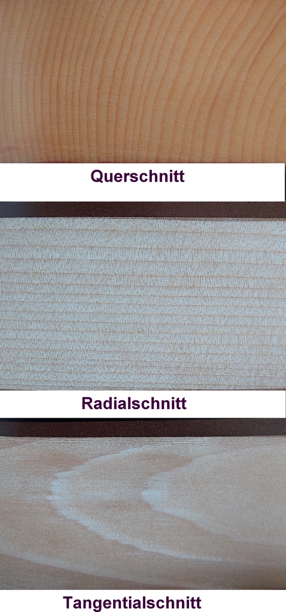 Der Radialschnitt erfolgt längs zur Stammachse und führt dabei durch die Markröhre. So werden die Jahresringe als parallele Linien und die Markstrahlen als glänzende ,,Spiegel" sichtbar. Aus diesem Grund wird er auch als Spiegelschnitt bezeichnet.