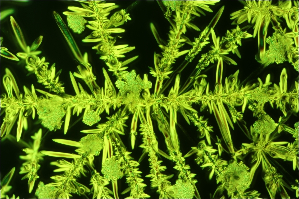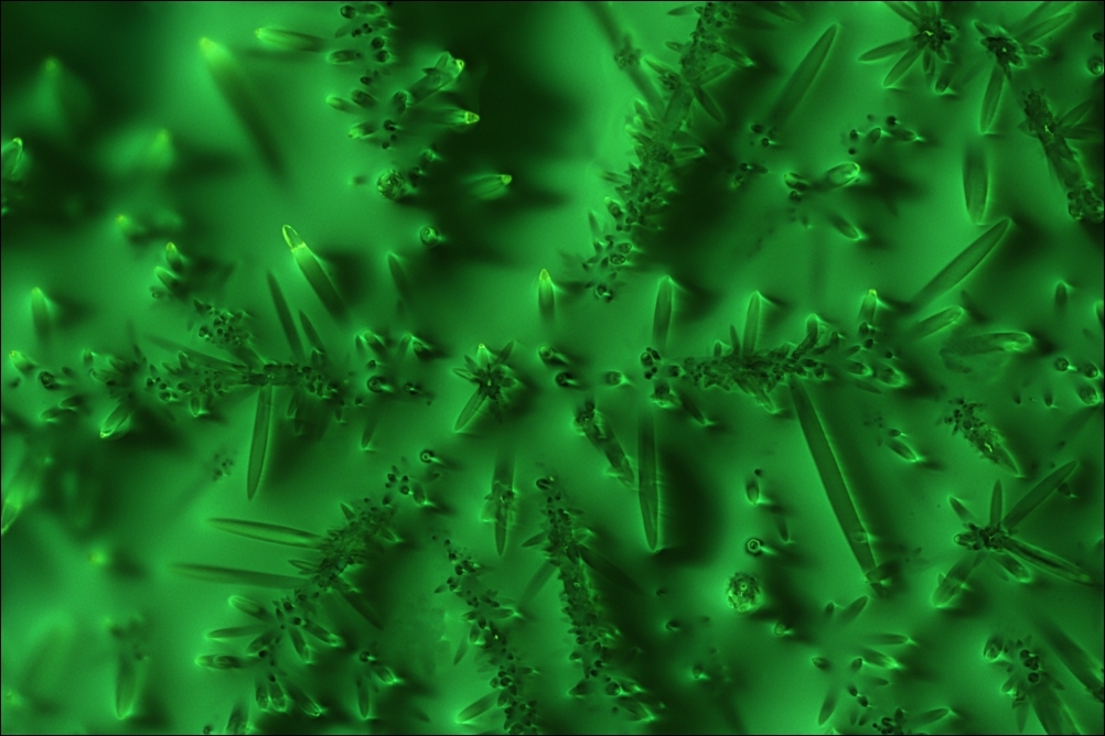 Mikrokristalle kennen wir ja vor allem von den supertollen bzw. stinklangweiligen Pol-Fotos, je nach persönlicher Betrachtungsweise. Ich mag diese Bilder eigentlich ganz gerne, schon weil es bei der Suche nach neuen Motiven im Grunde unendlich viele Möglichkeiten gibt. Na ja, wie gesagt, Geschmackssache.