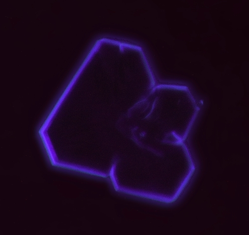 wenn ihr noch mal so einen Kristall mit Leuchtkanten habt: mal in Wasser oder Glycerin einlegen (Anthracen ist in beiden unlöslich). Passiert dann was?