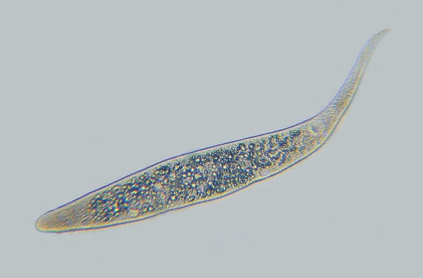 Derart beweglich war mein Tierchen nicht. Es schwamm relativ ruhig umher, drehte sich um die eigene Achse und tastete mit dem sehr beweglichen Rüssel alles ab, was ihm in den Weg kam. Auch war das Tier am Ende nicht spitz. Rüssel, Position der Mundöffnung und Bewimperung sind aber exakt so wie bei meinem Tier.