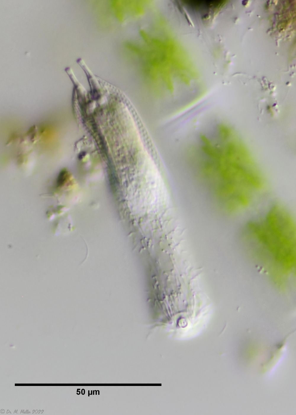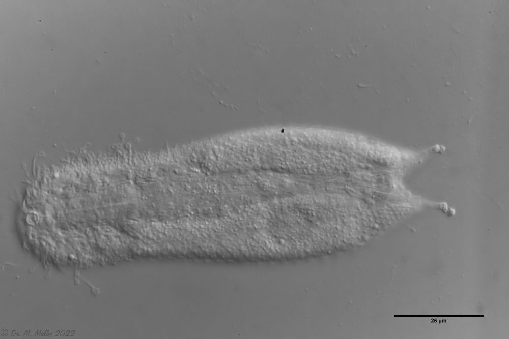 Im September 2018 habe ich einen Gastrotrichen mit zwei seltsamen, lateralen Organen im Simmelried gefunden. Hier meine damaligen Aufnahmen: