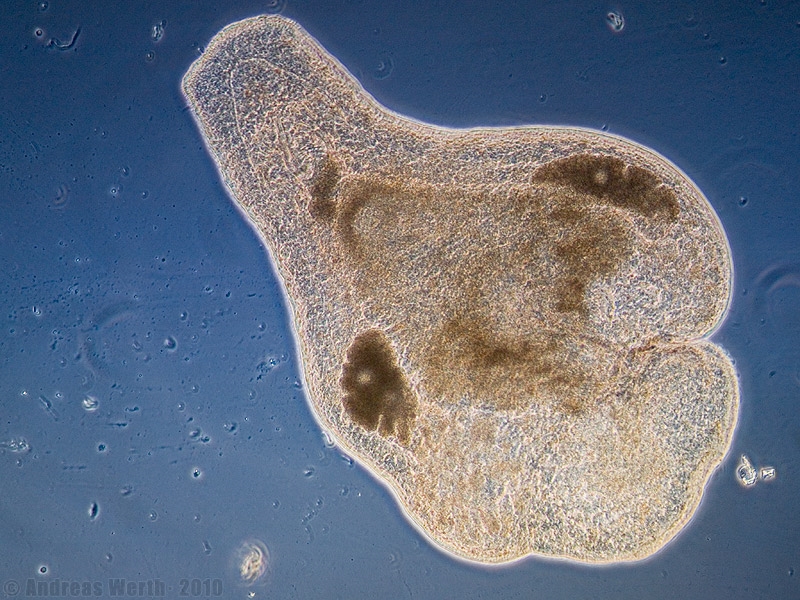 Die typischen Planarien/Strudelwürmer, die in der Aquaristik ihr Unwesen treiben sind, sind alle langgestreckt und zeigen häufig Augenflecken.