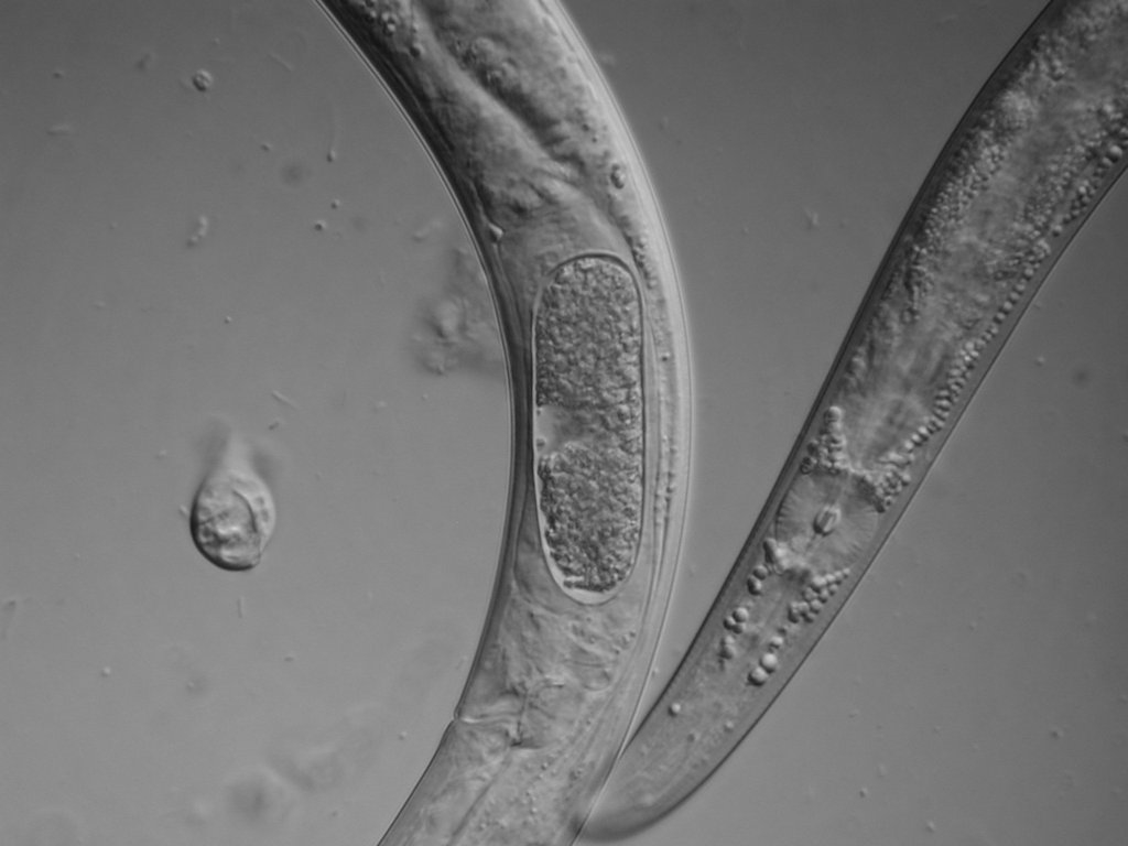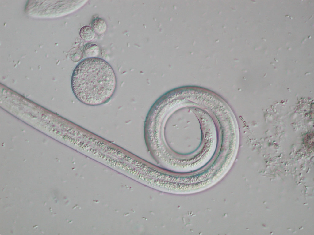 Mikroskopiert wurden Nematoden, schwanger und ihre Eier aus