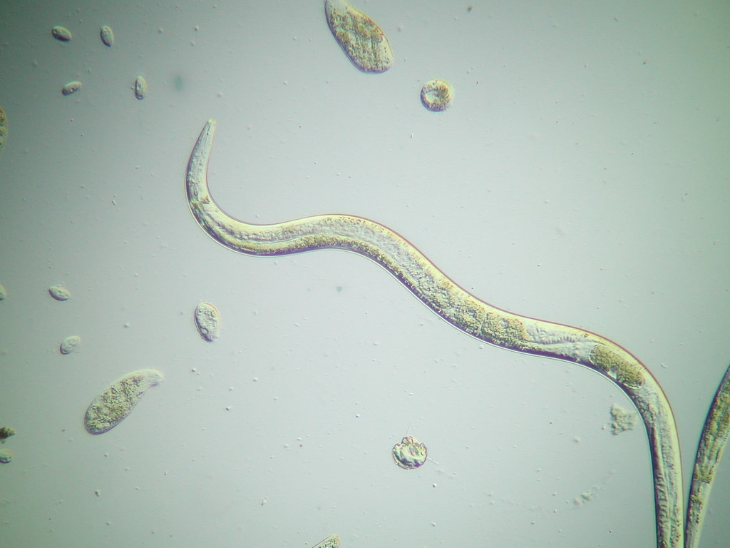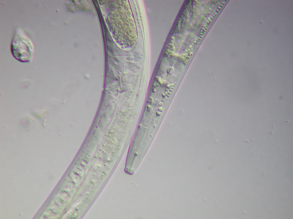 durch die zugegeben Fehlfarben (Nematoden sind farblos) bunt erscheint.