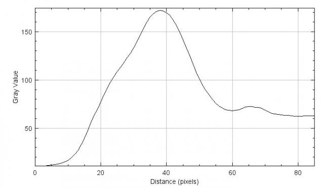 ich habe von deiner Flamme in ImageJ mal ein Profil angelegt. Was du uns hier zeigst ein einfach nur eine Intensität-Verteilung über das Bild.