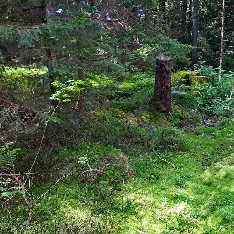 Bild 1 - Wuchsort des beschriebenen Fundes, ein Bergmoorwald mit Fichten, Ebereschen, Blaubeeren und Sphagnum-Moos. Foto: Matthias Wolf.