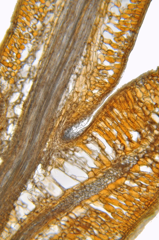 Im Normfall befindet sich der einzige Harzkanal in den Folgeblättern direkt unterhalb des Leitbündels.