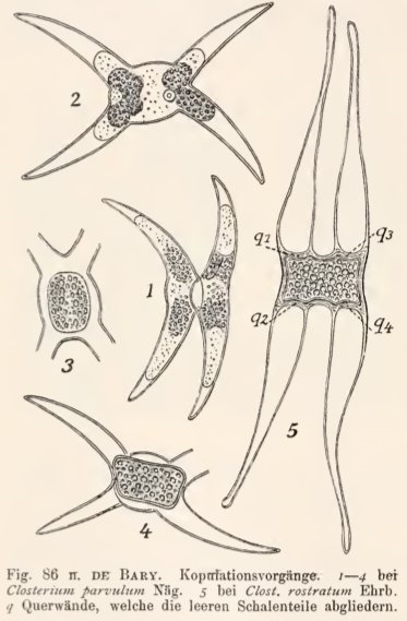 mich gefragt, ob es sich nicht um ein Kopulationsstadium einer Zieralge wie Closterium parvulum