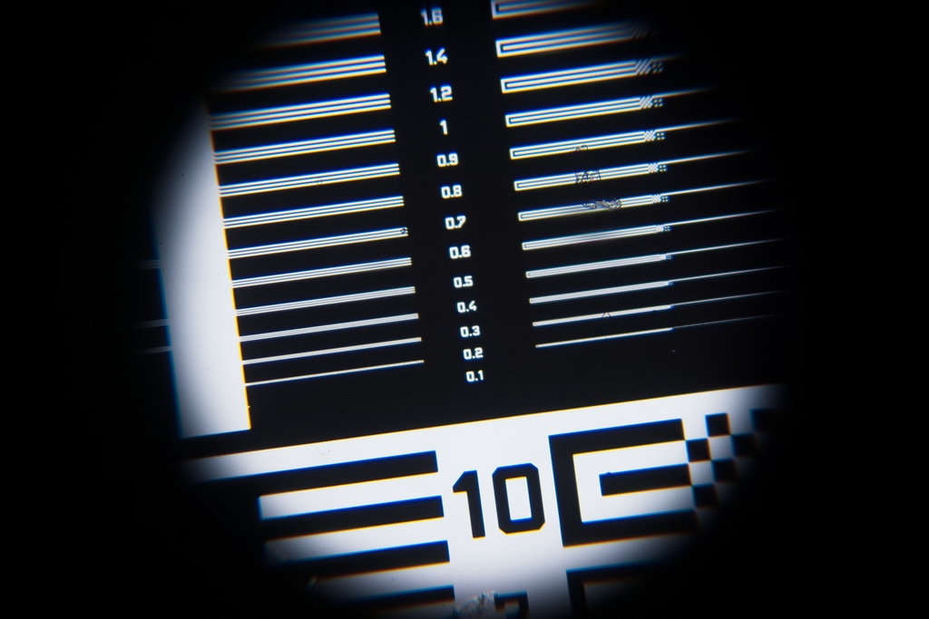 Die Bilder zeigen das Auflösungsvermögen anhand des Zeiss Auflösungstestobjektes bei einer seitlichen Beleuchtung durch eine Ikea-Leuchte. Die Fotos wurden mit einer Toupcam mit 1Zoll Diagonale und 20 Mpix in BMP aufgenommenund bearbeitet.