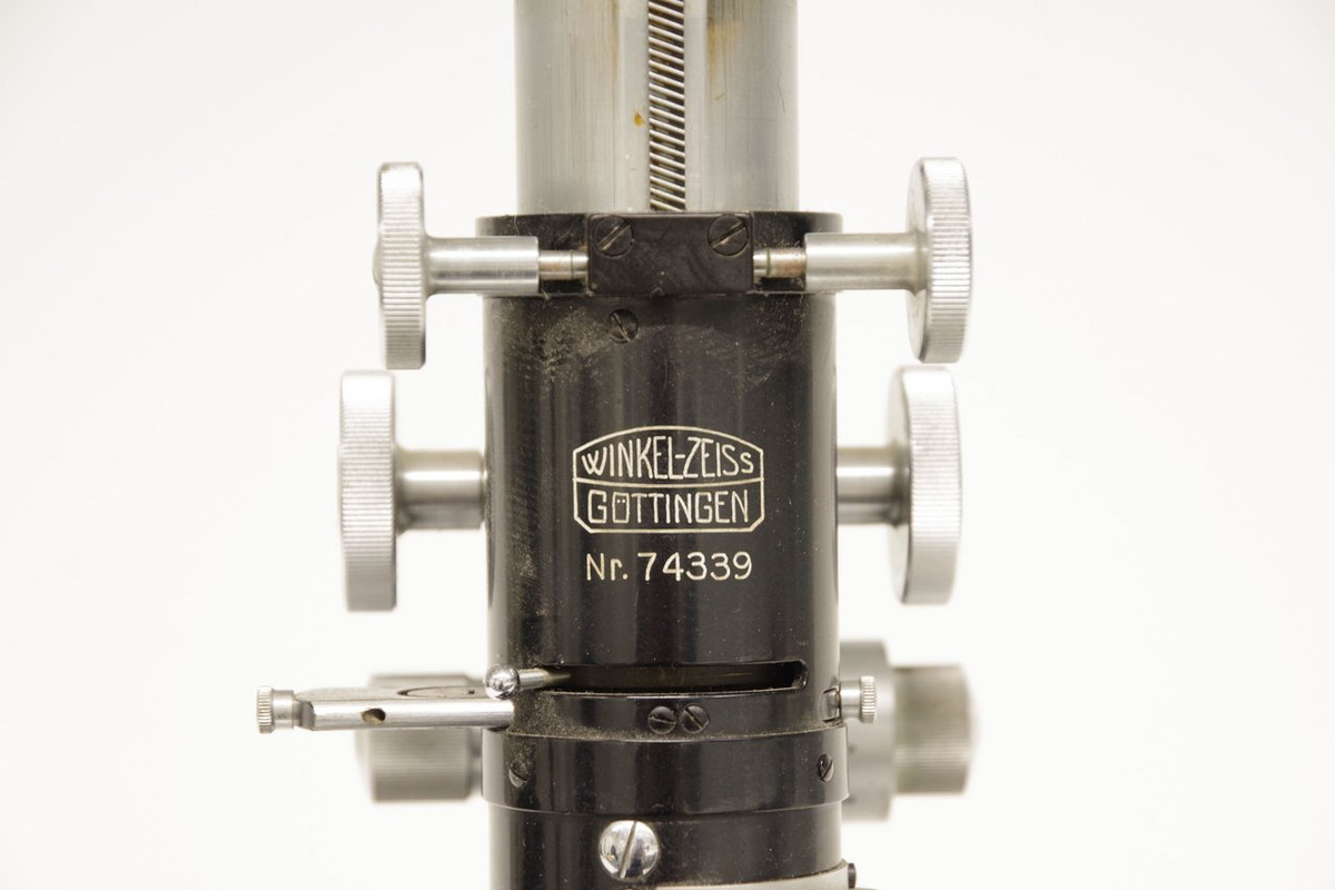 Das Mikroskop hat die Nummer 74339 und wurde laut Fr. Marte Schwabe 1946 hergestellt, weitere Angaben habe ich vom Zeiss Archiv leider nicht bekommen.