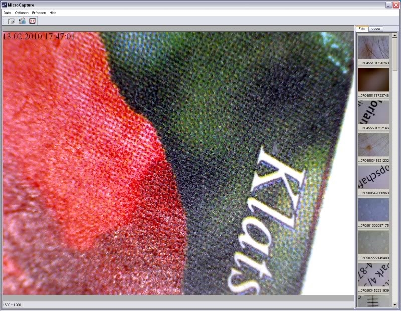 Da ich die mitgelieferte Software vorerst unangetastet lassen wolte, habe ich die Freeware Photobooth installiert. DigiMicro wurde problemlos erkannt und es konnte losgehen. Da bekanntlich Bilder mehr sagen als Worte, hänge ich ein paar Aufnahmen an. Angeschaut und aufgenommen habe ich alles, was mir auf die Schnelle in die Finger kam.