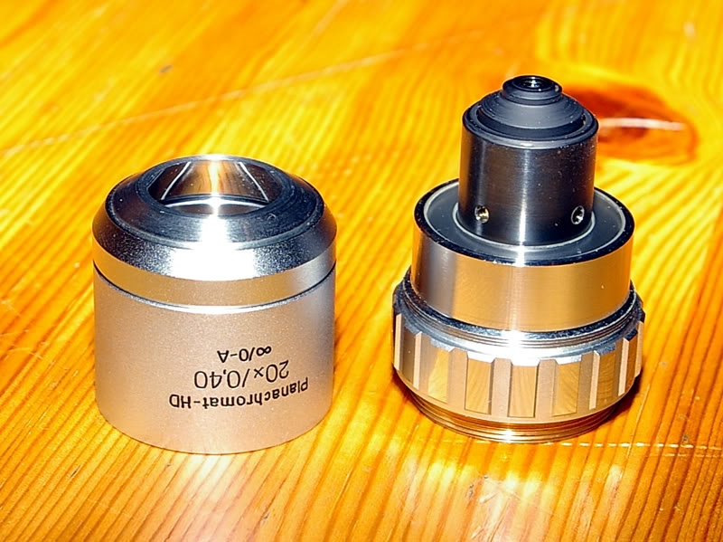 ich habe ein 20x Planachromat-HD Objektiv und da ist der Außenring locker (roter Pfeil im Bild). Der klappert also so leicht vor sich hin, was ein wenig nervt :D