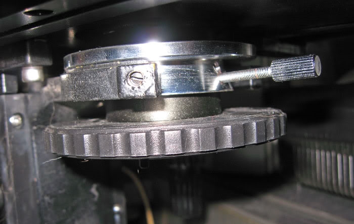 grundsätzlich muss ich Bernd recht geben: es sieht so aus, als ob der Kondensor ab Werk einmal fix zentriert worden ist. Sonst wäre an Stelle der Schlitzschraube in der Bildmitte eine Schraube in der Art der großen Silbernen auf 3 Uhr angebracht - und auf der gegenüberliegenden Seite des Kondensorträgers ebenfalls. Fürs Köhlern sieht das nicht gut aus.