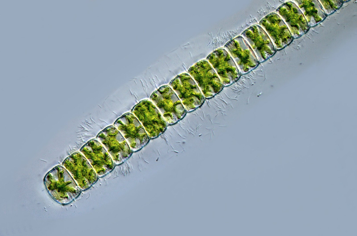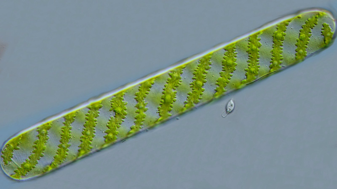Ich hatte zwar einen leisen Verdacht, weil ich die Schraubenalgen mit diesem ausgeprägten, gelappten Chloroplasten nicht kannte. Hab mir aber nicht die Arbeit gemacht nochmal nachzuschauen. Es ist natürlich Spirotaenia mit dem wandständigen Chloroplasten und den unregelmaßig verteilten Pyrenoiden. Ich nehme mal an, dass es sich um S. condensata handelt, in der Freshwater Algal Flora als einzige Art geführt. Mal sehen, ob ich in der alten Proben noch Spirotaenia finde, um die Lücke zwischen den beiden Chloroplastenbändern und den Nukleus abzubilden. Bei Martin sieht man das wunderbar,