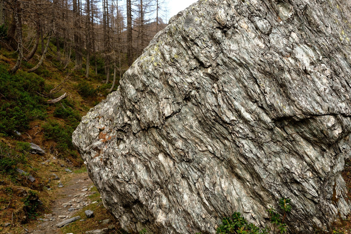 Auf dem Weg von der Ursprungalm sieht man zum Teil hausgroße Versturzblöcke dieses "Schiefer"-Gesteins.
