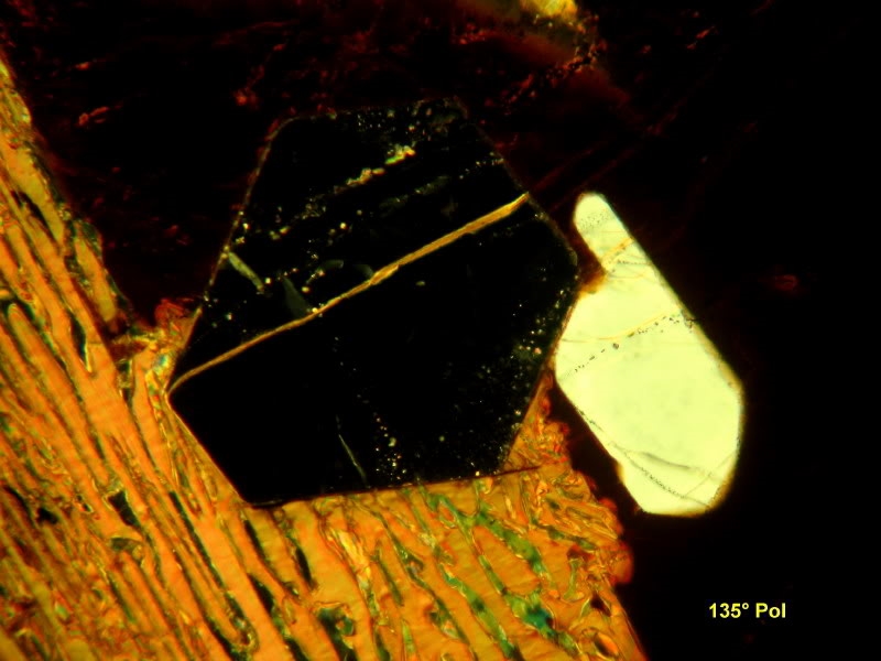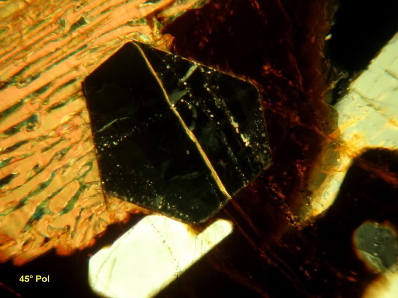 Vielleicht schaffen wir es ja noch zu bestimmen, ob es ein Amphibol oder ein Apatit ist. das müsste sich doch beim drehen der Probe im Pollicht ganz gut analysieren lassen.