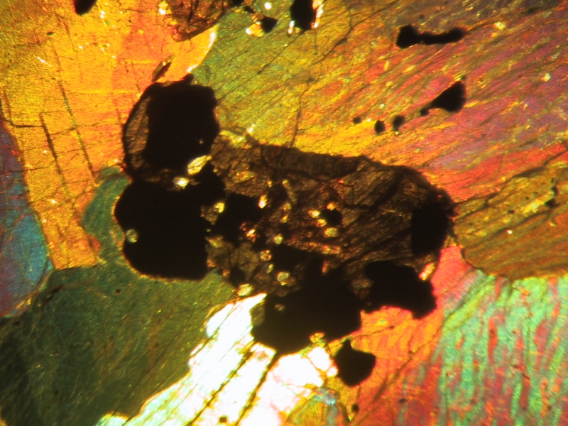 Ich zeige mal zum Vergleich, wie das unter meinem Stemi aussieht. Die Schärfe lässt ja noch zu wünschen übrig aber noch habe ich mein neues Mikroskop noch nicht wo das sicher besser gehen wird. In den dunklen Kristallen habe ich auch diese hellen eckigen Kristalle entdeckt und dann mal unter meinem Panphot angesehen. Da fehlt mir aber die Poleinrichtung