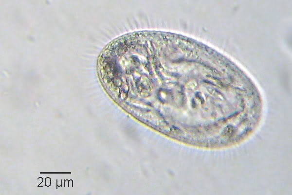 Frontonia sp.? Die Mundöffnung befindet sich im oberen Drittel. Aus Moos.