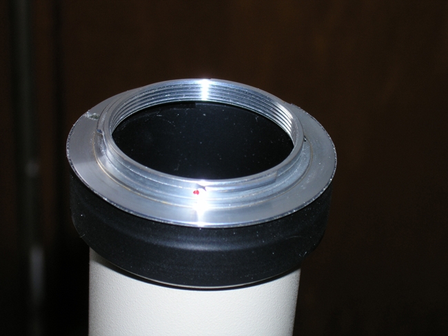 Für die Adaptierung der Kamera ans Mikroskop habe ich meinen alten OM-Adapter umgebaut. Hierzu wird das Anschlußteil für das OM-Bajonett abgeschraubt und ein billig bei ebay erhältlicher M42-Adapterring aufgeklebt ("Pattex Repair Extreme" - hält bombenfest). Da die Pentax und die alte OM von Olympus praktisch das gleiche Auflagema haben bleibt der Abgleich mit den Okularen tatsächlich perfekt erhalten.