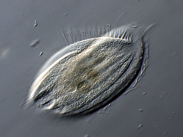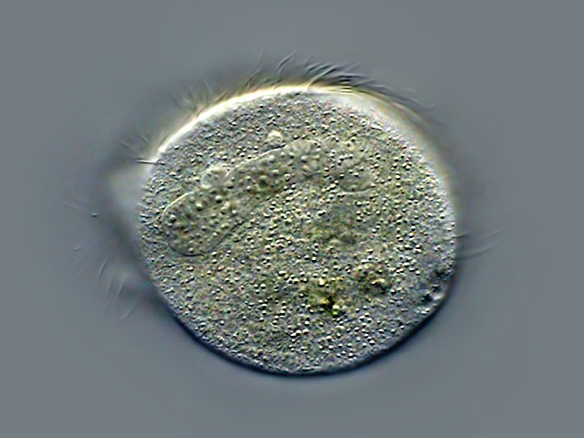 In dem wenig gequetschten Exemplar ist der hufeisenförmige Makronukleus erkennbar: