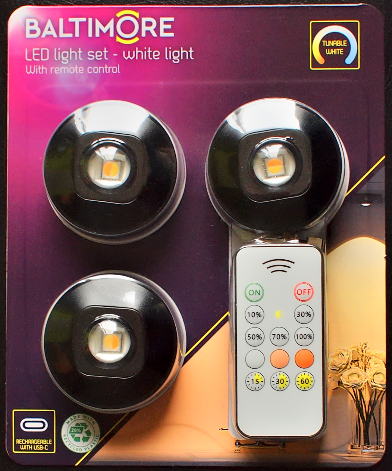 Beim Einkaufen in einem sehr beliebten Geschäft ( ;) )in den Niederlanden stieß ich auf eine LED-Leuchte, die für die Mikroskopie brauchbar ist. Es handelt sich um das sogenannte 'Baltimore LED light set – white light'. Es besteht aus drei Leuchten, die über USB-C wiederaufladbar sind. Dabei ist auch eine Fernbedienung zur Einstellung von Farbtemperatur und -intensität. Die Leuchte verfügt über zwei nebeneinander angeordnete LEDs, von denen eine kaltweißes und die andere gelbliches Licht abgibt. Es gibt drei Einstellungen: kaltweiß, warmweiß und warm. Bei warmweiß sind beide LEDs eingeschaltet. Die Lichtintensität ist von 10 % bis 100 % einstellbar, wobei 100 % sehr hell ist (man sollte nicht direkt in die Leuchte blicken). Für die Mikroskopie empfiehlt es sich, mindestens zwei Mattfilter zu verwenden und diese in den Filterhalter (falls vorhanden) einzusetzen. Die Mattfilter sind notwendig, um das Licht der Punktquelle zu streuen und so eine gleichmäßige Ausleuchtung und ausreichende Auflösung zu bekommen. Sie mildern auch das sehr helle Licht; ohne Mattfilter kann es schädlich für die Augen sein.
