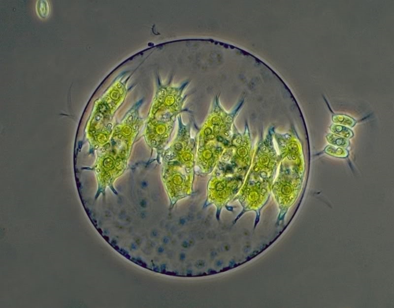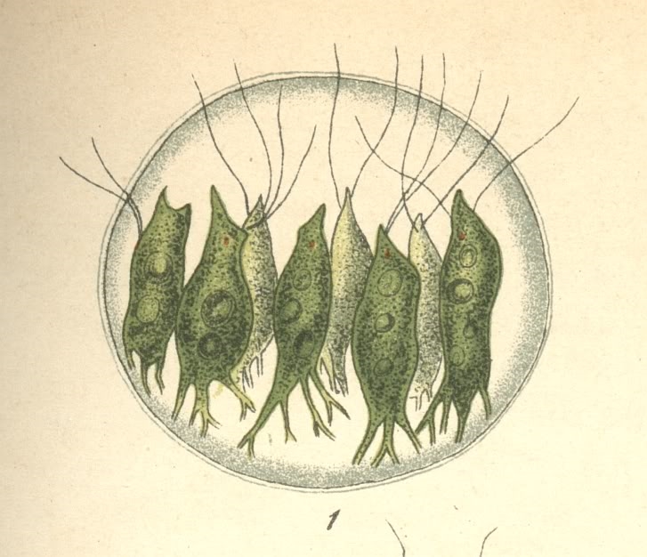 heute poste ich eine kleine botanische Kostbarkeit - Stephanosphaera pluvialis Cohn.