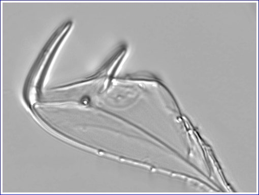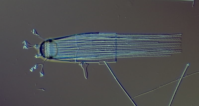ein sehr seltenes Objekt und zudem sehr fragil !  Es gehört Glück dazu um eine ansprechende Ansicht in der Präparation zu erhalten. Hier mein Versuch mittels DIC die feinen Fanghaken schön ins Bild zu bekommen.