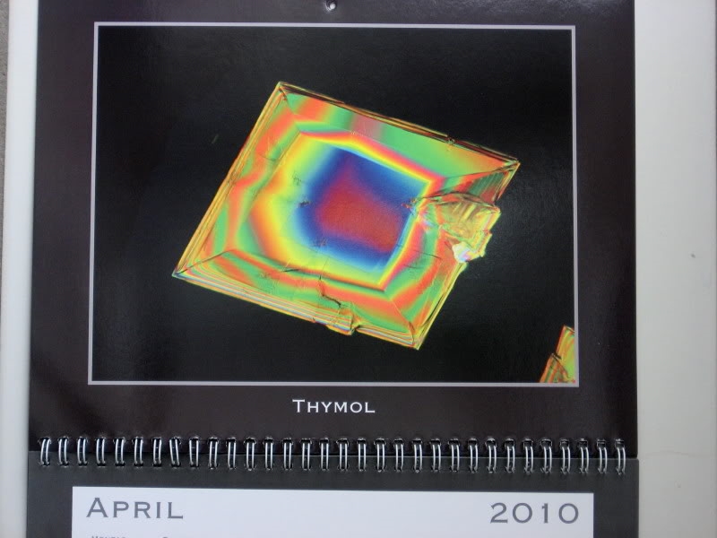 DIC mit Lambda und Lambda/4 kombiniert und den Lambda/4 auch noch gedreht, bis es schön bunt war. Dann habe ich diese Bilder im Kontrast und der Farbsättigung  verstärkt. Der selbe Kristall kann auch so raus kommen. Also reproduzierbar ist da nichts. Die Präparate sind nicht beständig, weil Thymol und Menthol sublimieren, wie die schöne Apothekenflasche zeigt.