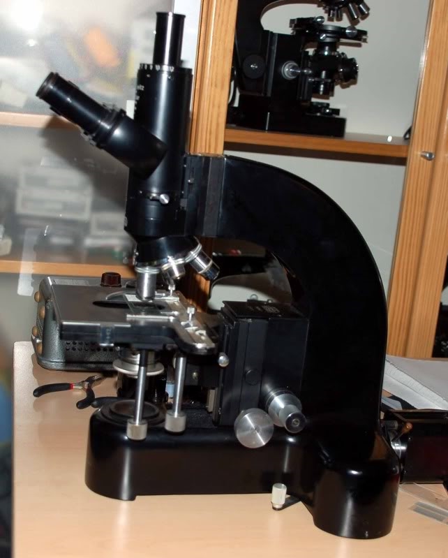 Ich habe u.a. ein Ortholux I aus der Serie mit dem einschwenkbaren Spiegel zur Umschaltung von Durchlicht auf Auflicht.