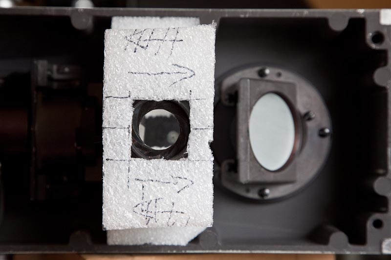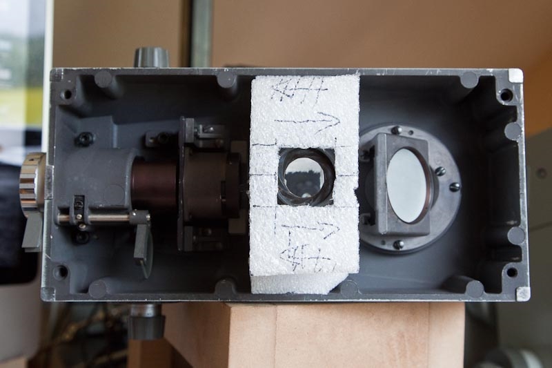 Auf den Fotos kann man auch deutlich den Strahlenteiler erkennen.