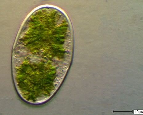 Aufgrund der Form des Chromatophoren (stelloid) halte ich das für Cylindrocystis brebissonii und zwar um eine etwas "gequetschtes" Exemplar (möglicherweise durch das Deckglas kurz vor dem Austrocknen des Präparates).