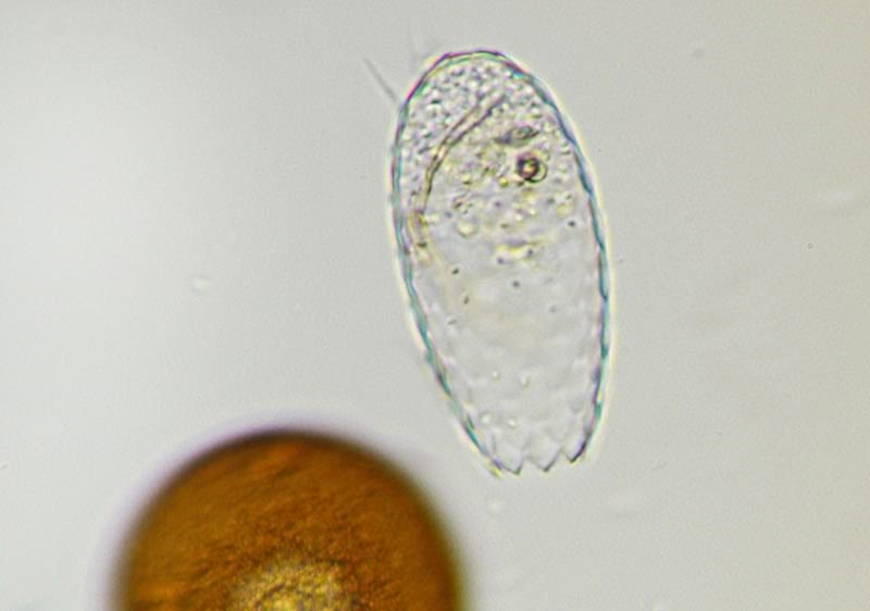 Hier ein Bild einer einzelnen Schale bei der ich auf die Öffnung scharfgestellt habe um die Art zu bestimmen, ich meine es ist eine Euglypha alveolata: