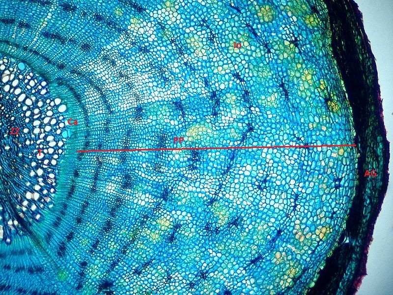 über die Anatomie stolpere ich ein bisschen. Den von Dir erwähnten Artikel habe ich gelesen und mit meiner Literatur verglichen. Das Phloemparenchym (Rindenparenchym?) außerhalb des Zentralzylinders verstehe ich nicht ???