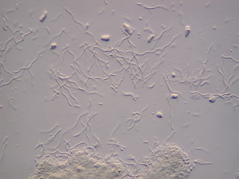 Übrigens...handelt es sich bei den reichlich herumwimmelnden spiraligen Gebilden ( letztes Foto ) um Spirochäten?