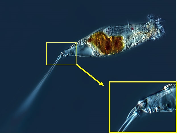 Die Länge der Zehe beträgt ca. 2/3 der Körperlänge. Auch im amerikanischen Forum gab es mal Irritationen über die scheinbar so lange Zehe bei Trichocerca, wie dieses Bild ebenfalls nahelegt: