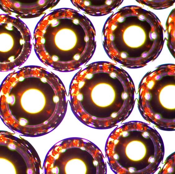 Schaum, Blasen in einschichtiger Lage, Durchlicht mit einer 6-Punkt-Ringleuchte unter dem SteMi ?