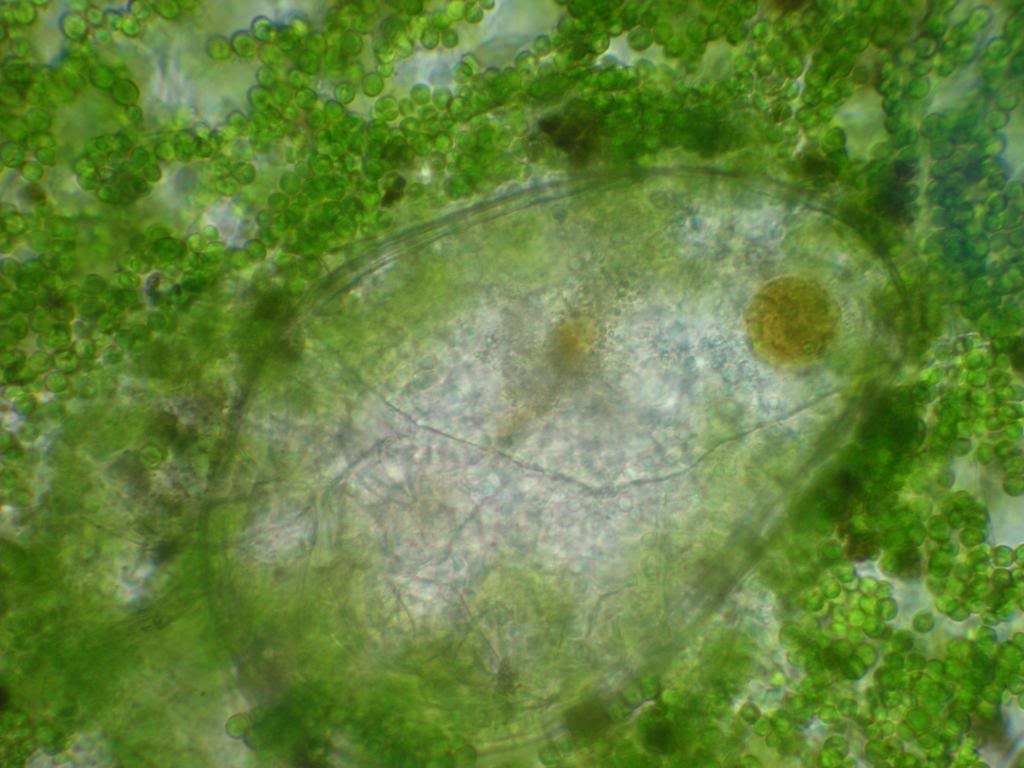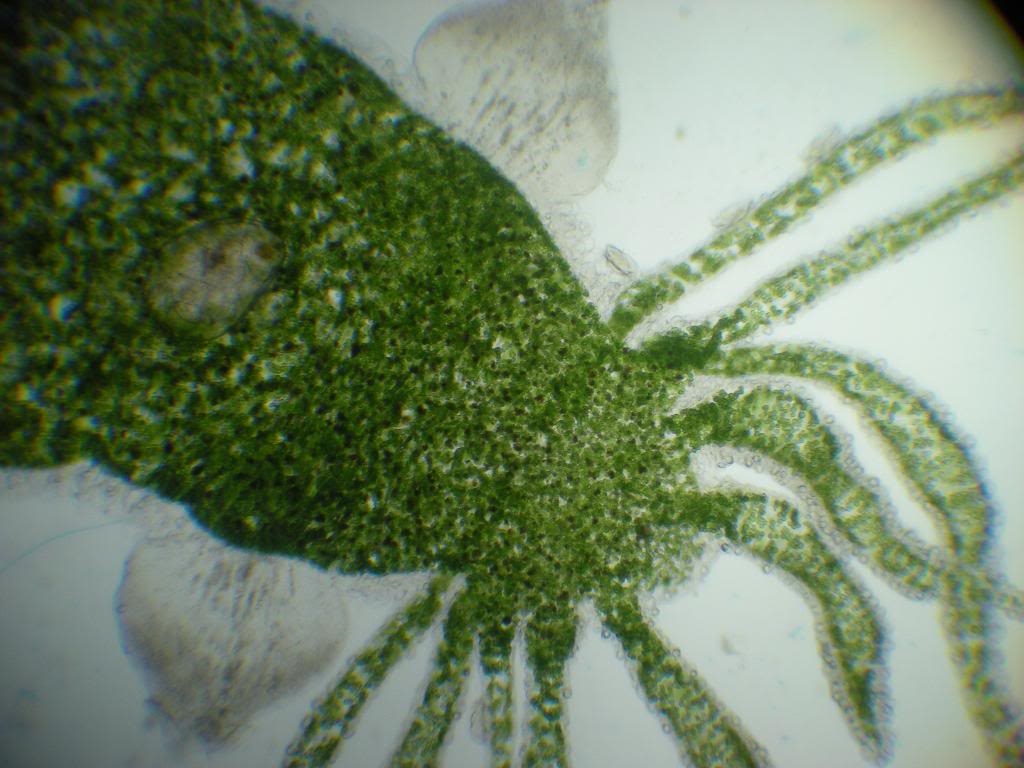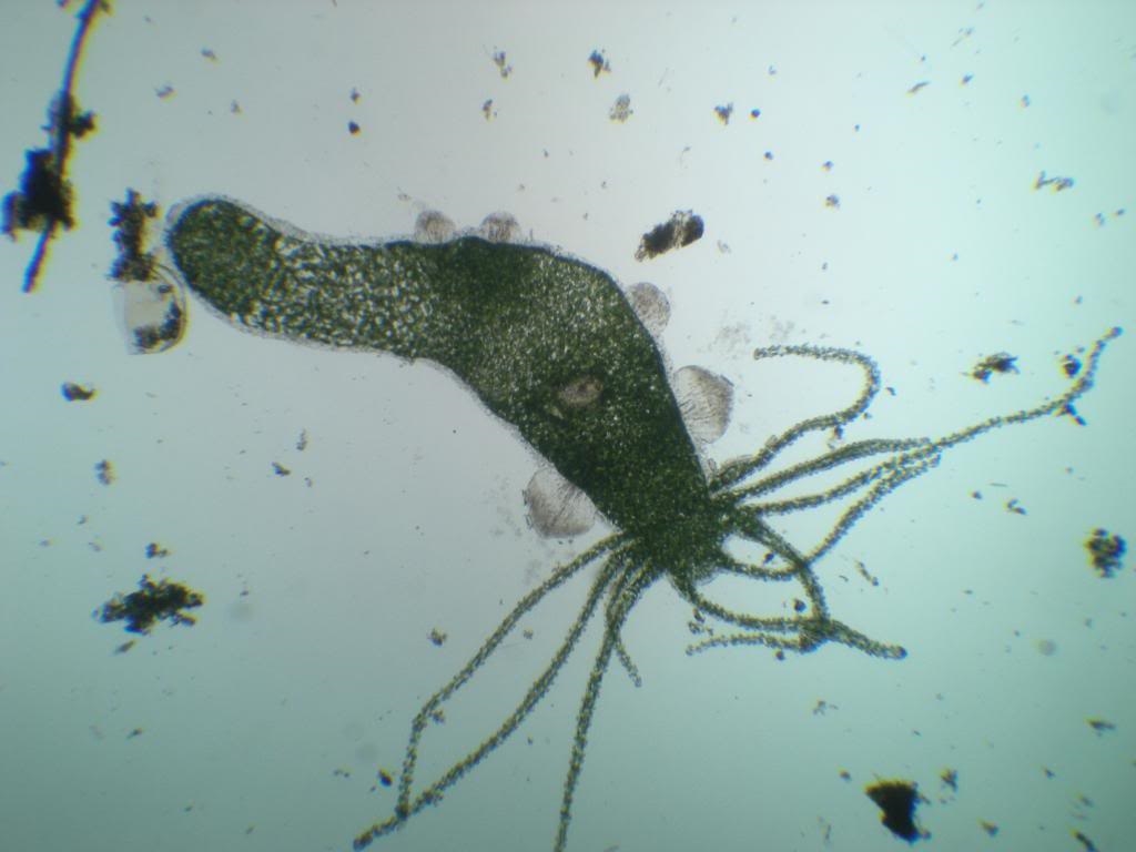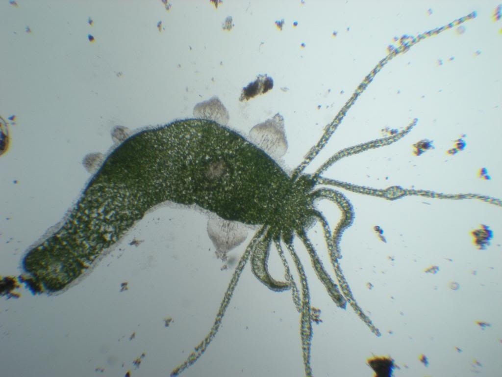 Die Grünalgen in der Hydra haben mich zunächst verwirrt, bis ich herausfand, daß die Hydra mit ihnen in Symbiose lebt, aber auch einige frisst.