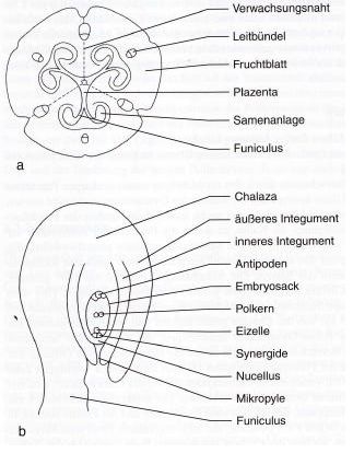 Die Basis der eingerollten Fruchtblätter, quasi das Gewebe, aus dem der Stiel der Samenanlage (Funiculus) entspringt, wird dabei als Plazenta bezeichnet. In Analogie zur Plazenta der Säugetiere muss ich dabei an ein stark mit Leitbündeln durchsetztes Gewebe denken, dass die ausreichende Nährstoffversorgung der sich entwickelnden Frucht sicher stellen soll.