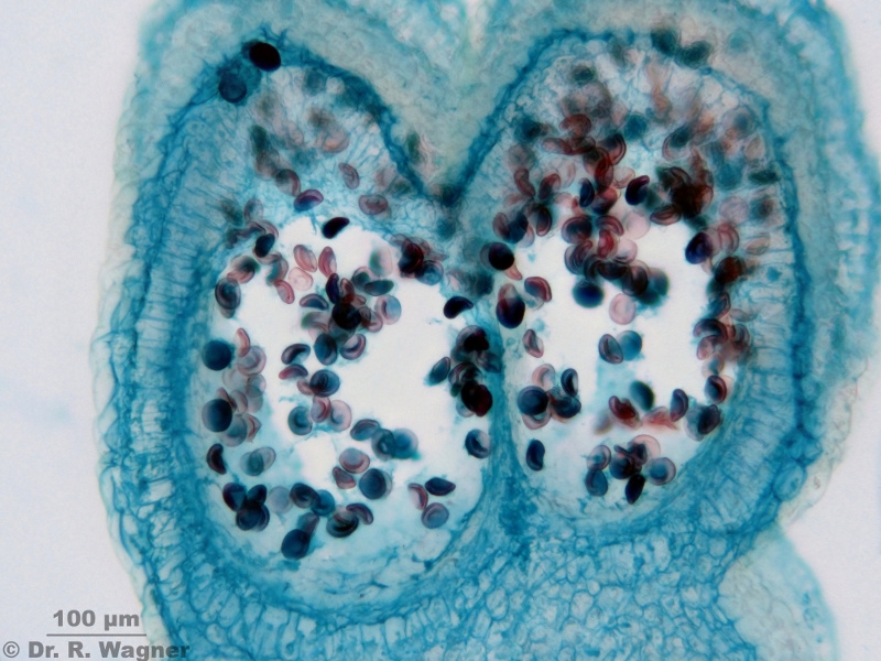 eigentlich habe ich unter dem Titel "Querschnitt Pollenschläuche" was Elektronenmikroskopisches erwartet! Aber hier handelt es sich doch eher um zwei Pollensäcke einer Theke?
