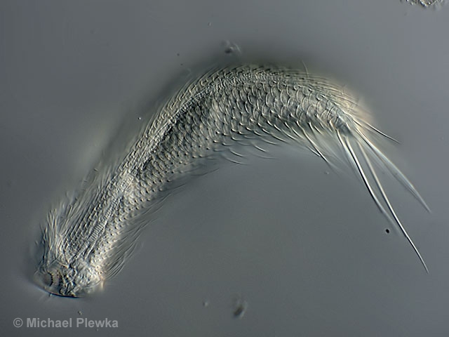 es handelt sich dabei um Chaetonotus zelinkai (Größe ca 200µ), was man an folgenden Merkmalen erkennen kann:
