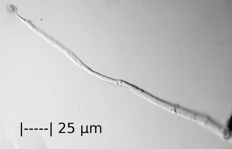 neben Kieselalgen und Foraminiferen finde ich in Miozänen Mergelproben mitunter auch solche Fäden wie auf Foto 1 abgebildet. Es ist meiner Meinung daher offensichtlich, dass es sich um ein fossiles und nicht um ein zufällig in die Probe gelangtes Objekt jüngeren Datums handelt. Um die Reste welcher Lebewesen (pflanzlich oder tierisch) es sich dabei handelt, habe ich bisher aber nicht ausfindig machen können.
