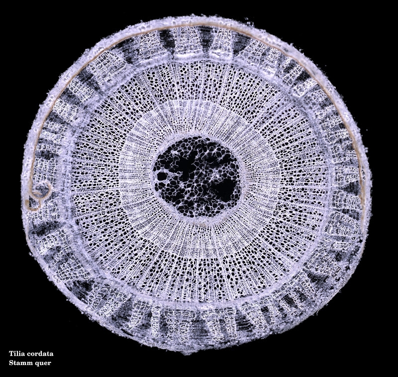 Da ein Klassiker in meiner Präparatesammlung noch fehlte, ging ich daran einen Lindenast quer zu schnippeln.