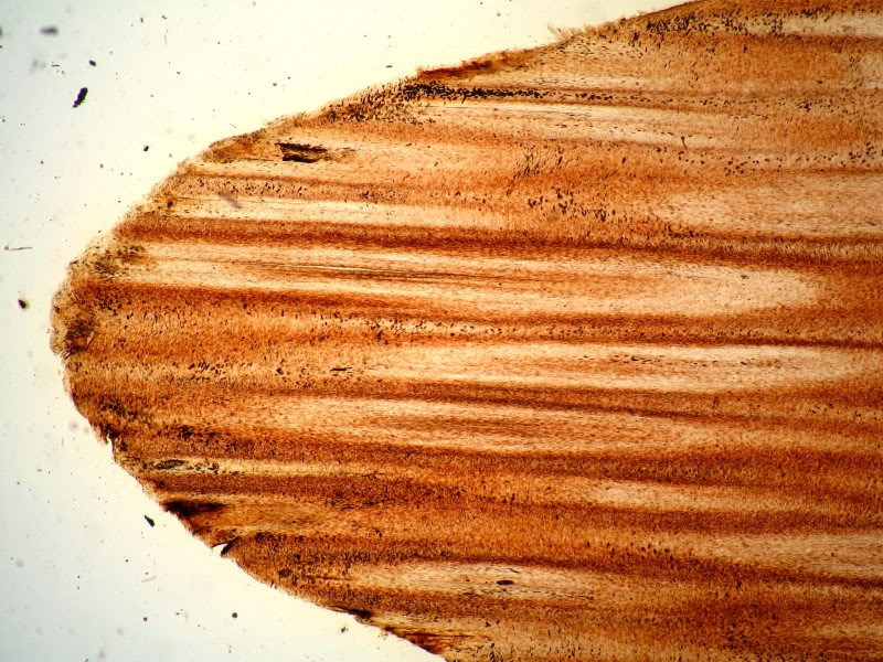 ich tippe einmal auf ein Nashorn, will heißen, ein Dünnschliff durch das Horn des Nashornes.