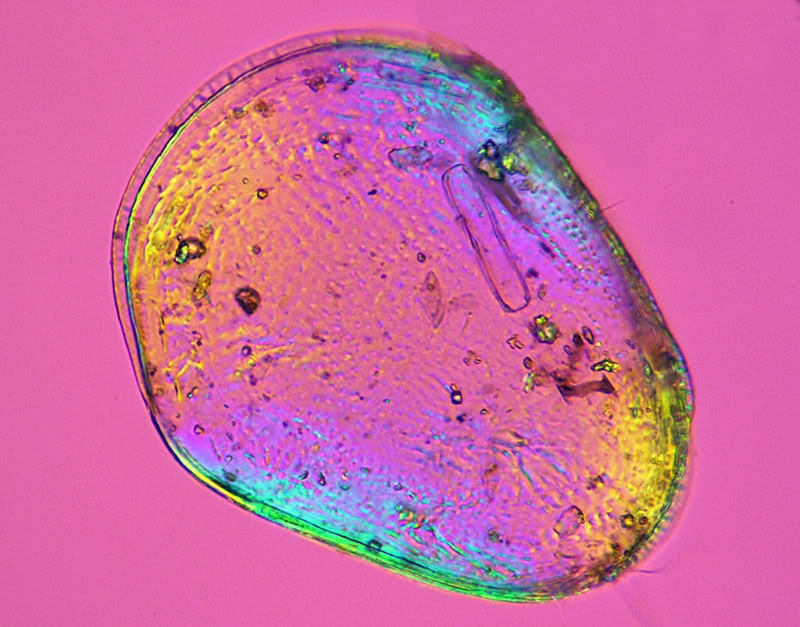 weil mir letzthin Ernst Hippes farbiges Krebschen (mittels Polarisation und Glimmerplättchen) so gut gefiel machte ich mich auf die Suche und fand in einer Probe aus der kürzlich besuchten Schwemm auch eines: