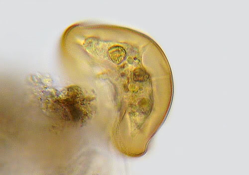 Ich beobachte meistens Amöben im Detritus. Viele Schale von Testacea wie Arcella liegen dan schon quer. Mit ein bisschen Glück...