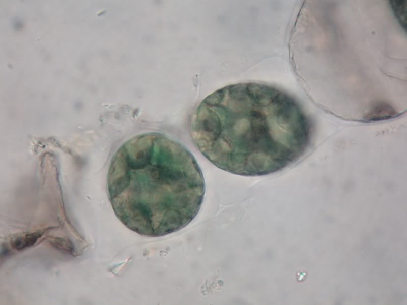 Die ursprünglich gut erhaltene grüne Farbe der Chlorophylls ist nach 16 Jahren einem leicht olivstichigen Braun gewichen, die Chloroplasten sind aber nach wie vor gut zu erkennen.