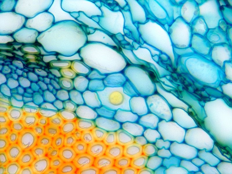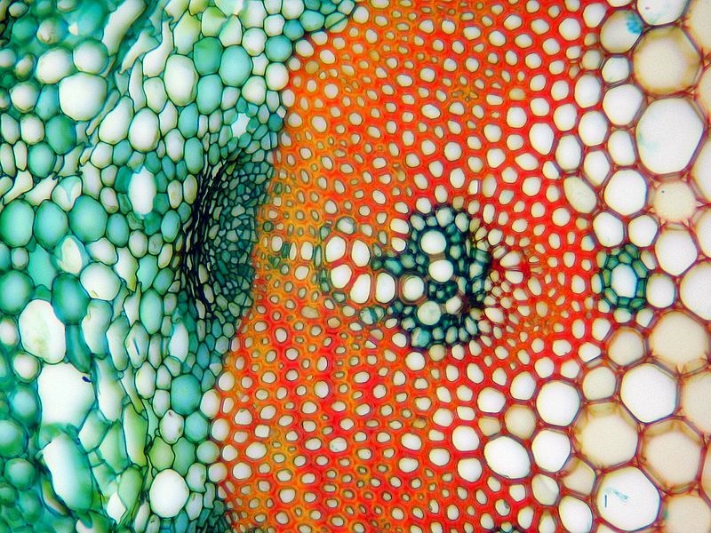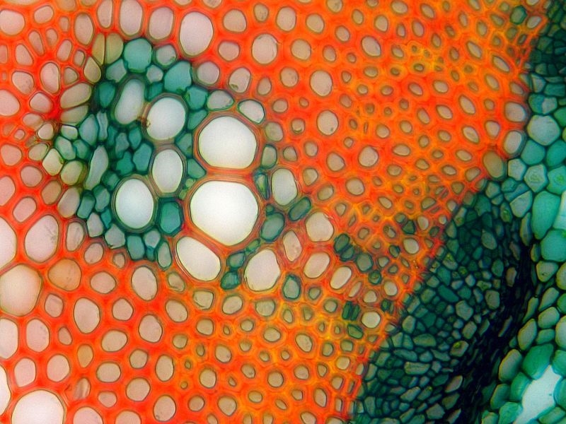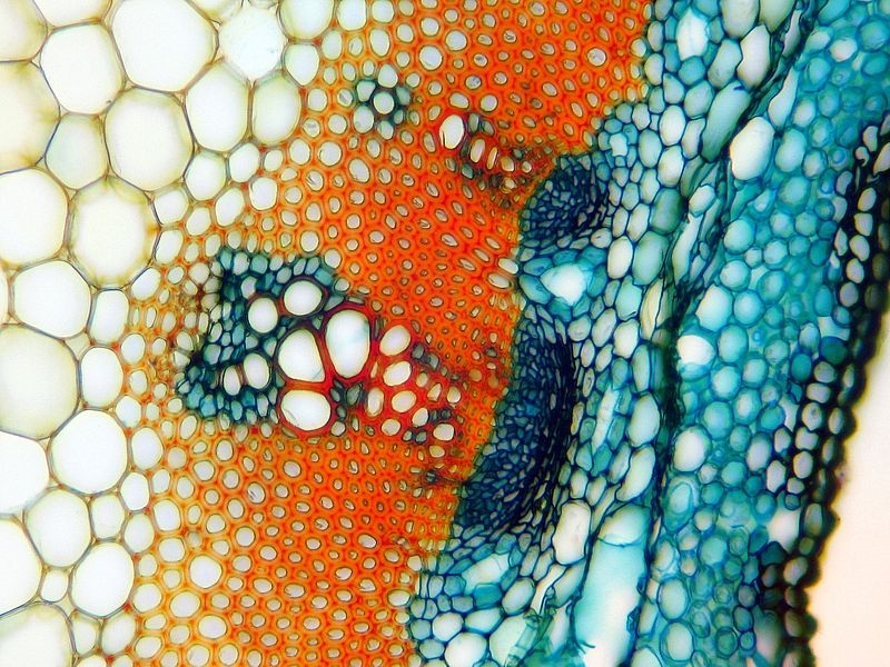 Die großen Tracheen haben einen Durchmesser von ca. 20 bis 25 µm, der Siebzellen reichen von 4 bis 9 µm und sind von ihren deutlich kleineren Geleitzellen umgeben.