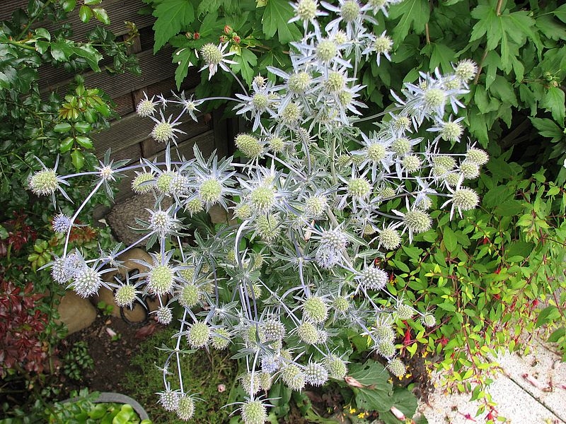 heute möchte ich einen weiteren Gast aus unserem Garten vorstellen: die Blaue Edeldistel, auch Mannstreu genannt (Eryngium planum).